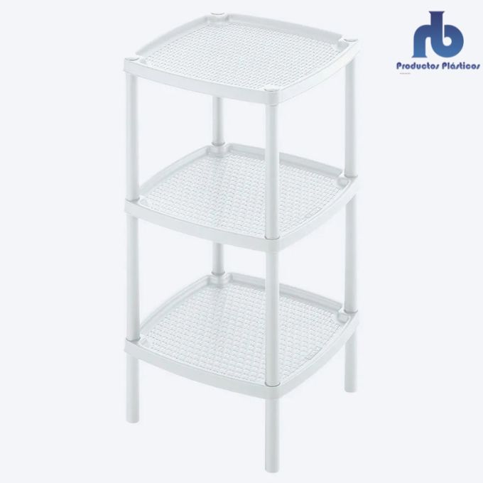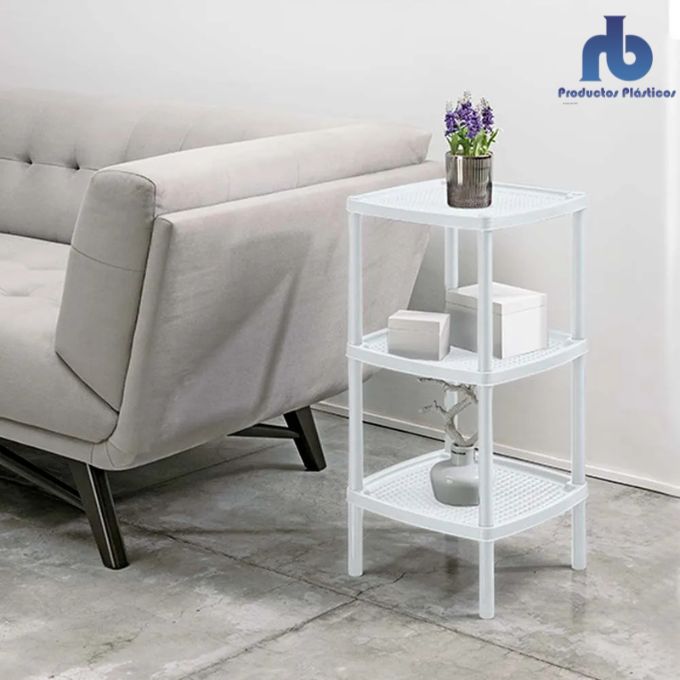 Mesa cuadrada plástica multiusos, con tres entrepaños ideales para guardar y optimizar espacios. Fácil de limpiar, no se oxida y puedes usarlo en el baño,cocina, estudio, habitaciones y closets.